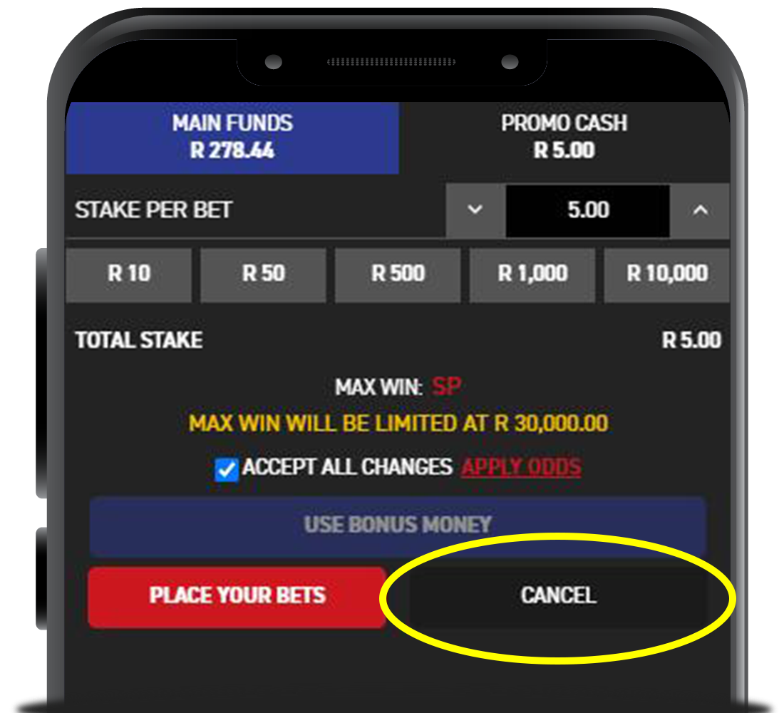 If Your Fixed Place bet is not correct, you can cancel the Ticket by clicking Cancel on your bet slip and take the bet again.