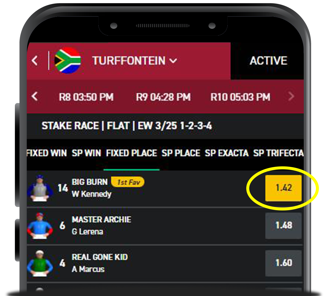 Your Fixed Place bet will be indicated by the Runner chosen.