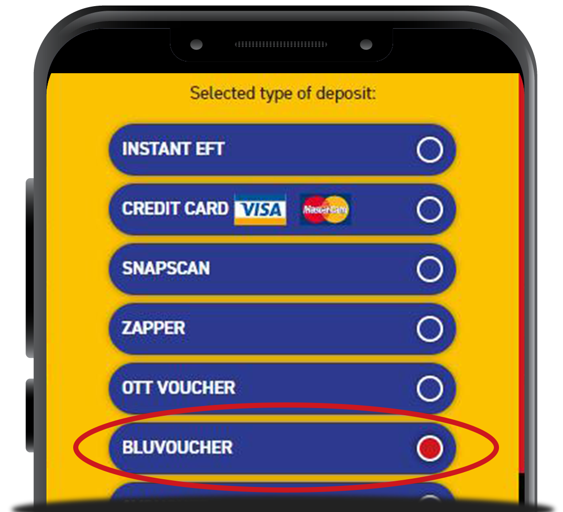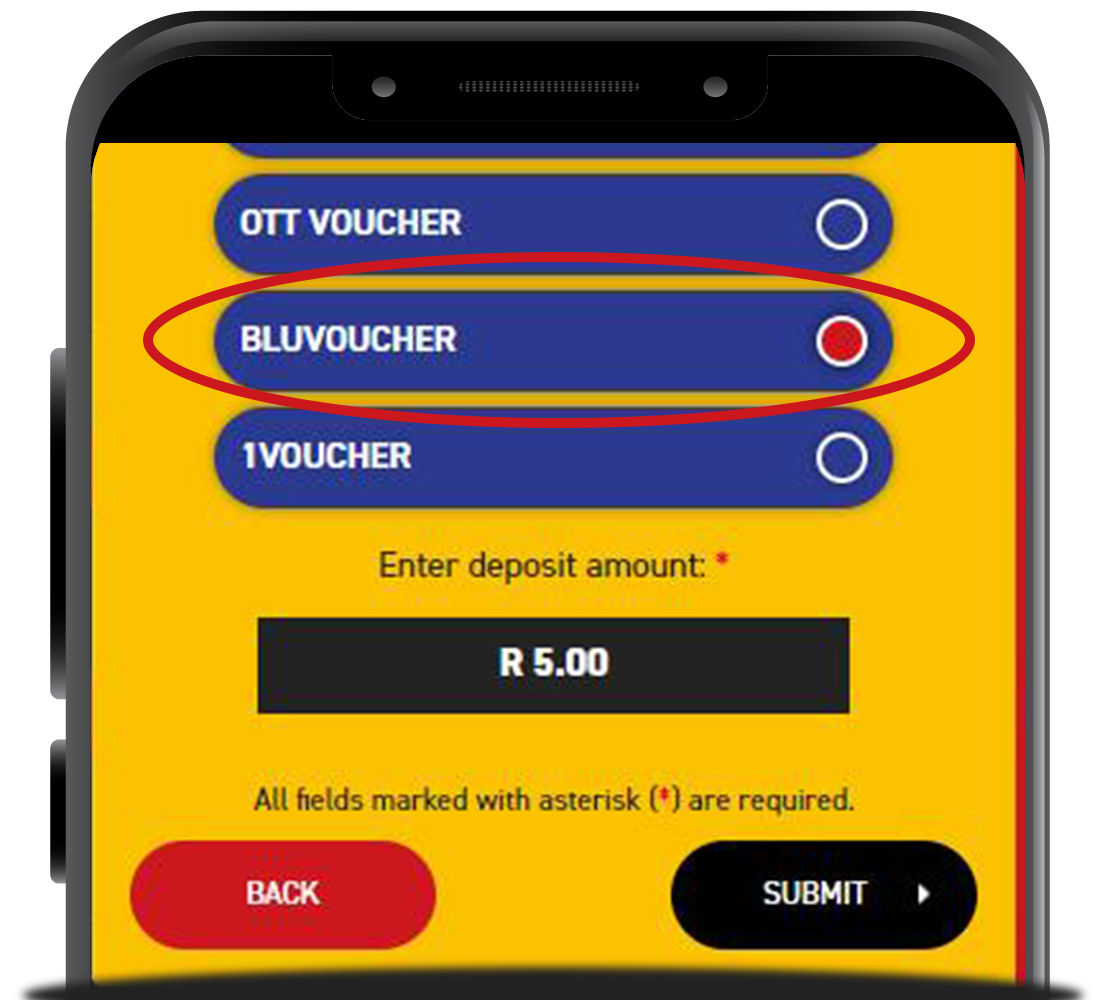 After selecting BluVoucher, enter the amount you wish to deposit, starting from R5 then click Submit