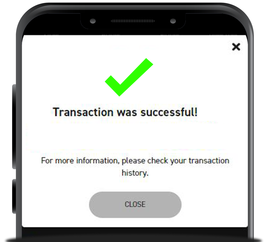 The "Transaction was Succesful" message will appear on your screen. You click close to go back your home page